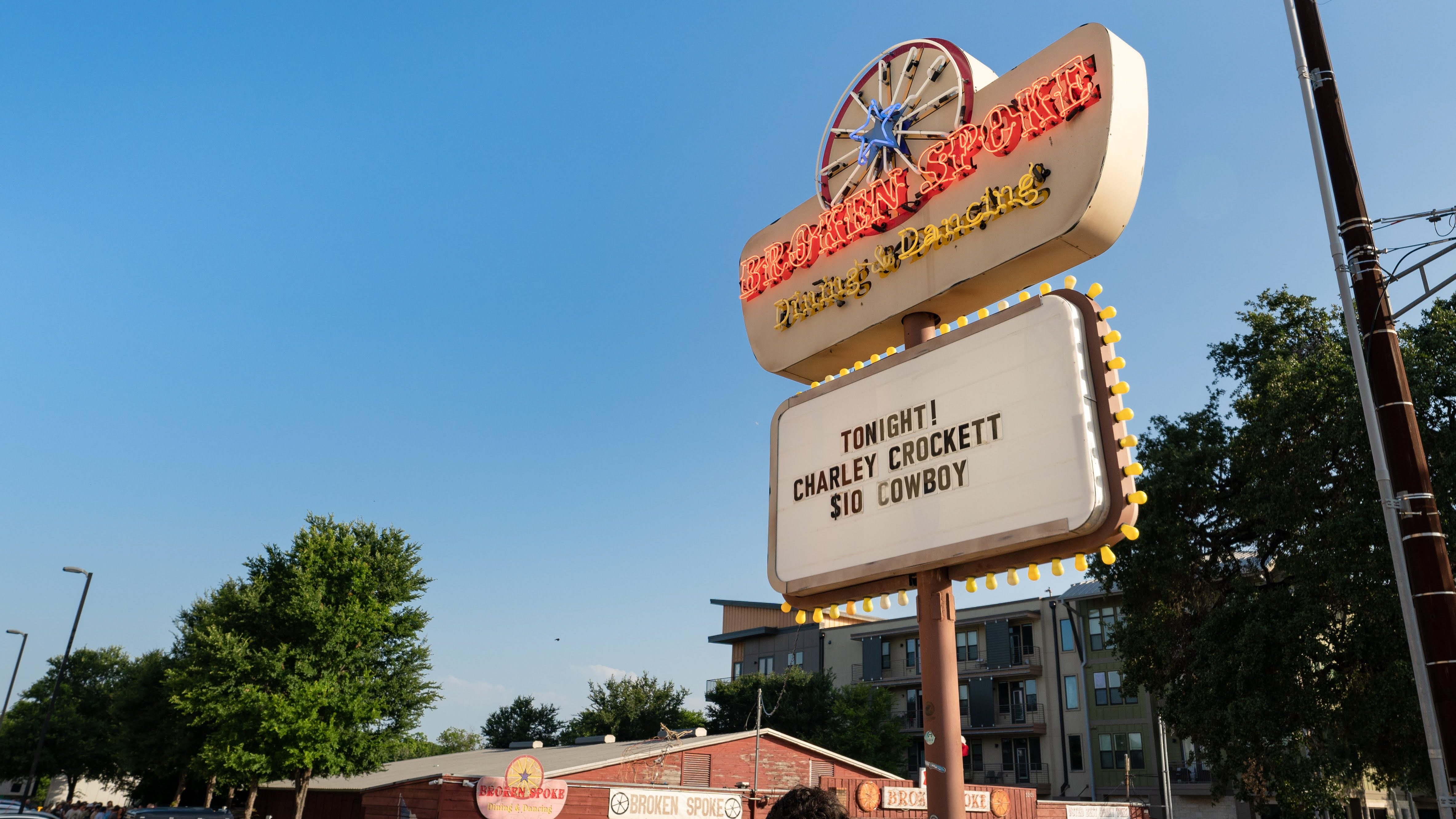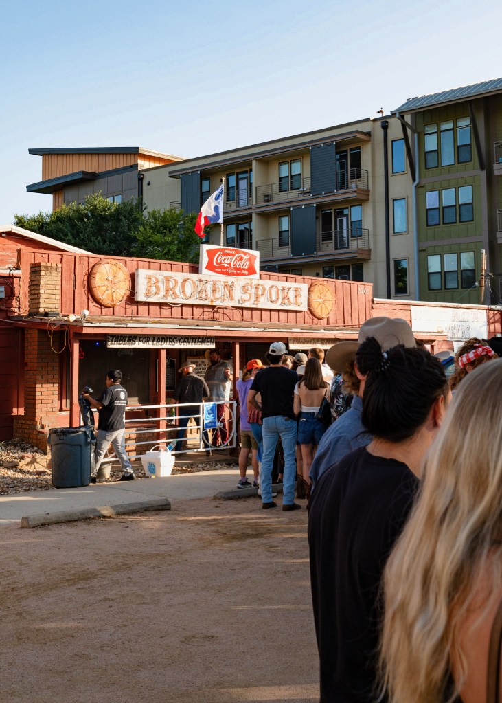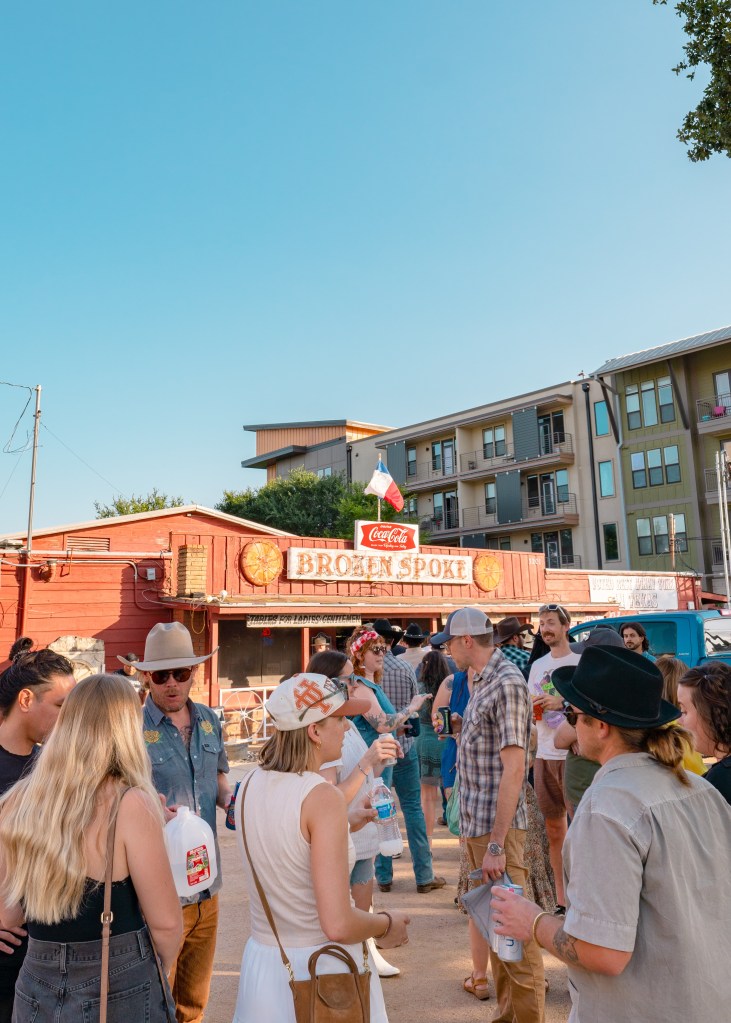 Charley Crockett has certainly been basking in the spotlight recently, having released a live album from the legendary Ryman Auditorium, performing on television for Jimmy Kimmel Live!, and even playing sets at recent festivals such as Texas’s Two Step Inn and California’s Stagecoach. Returning to the Broken Spoke was a nostalgic change of pace and a nod to Crockett’s roots, reflecting the journey that he has taken throughout his career. Despite the cozy setting of the Broken Spoke, the atmosphere was charged with enough energy to rival that of a stadium. Although Crockett wasn’t set to perform until after 9pm, fans began lining up with lawn chairs around lunch time, sharing beers under the sun as they waited hours for the doors to open. By the time staff began letting people inside, the line weaved through the parking lot and down Lamar past the apartment building. With no advanced ticket sales and a limited capacity inside, everyone waited anxiously to see if they would make the cut.
